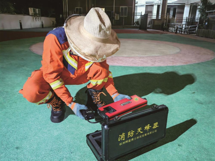 这款灭蜂器依靠快速打气和储气装置,将浸有专用药剂的灭蜂弹射入蜂巢,可实现马蜂的毒杀与熏离。处置两天后,蜂巢内马蜂便能被彻底清除,残余空巢可直接捅落或等待自然脱落。